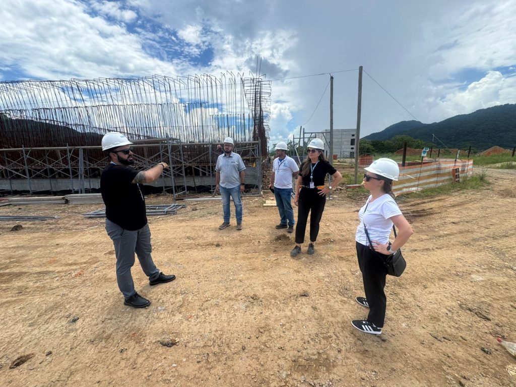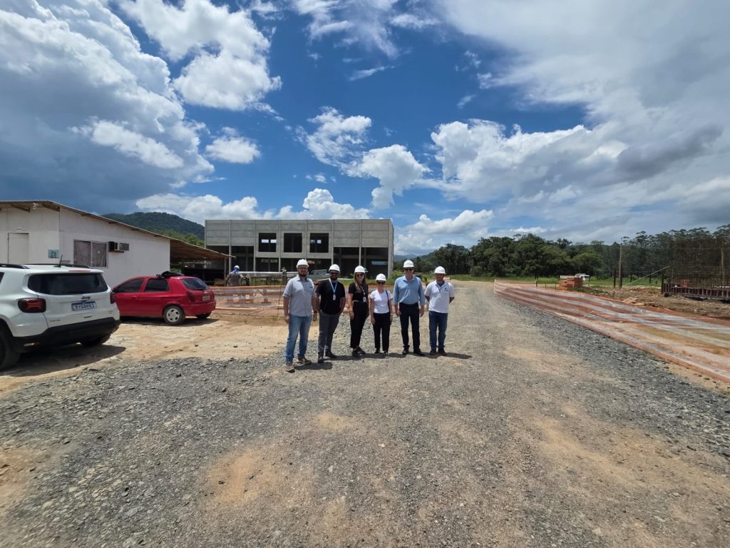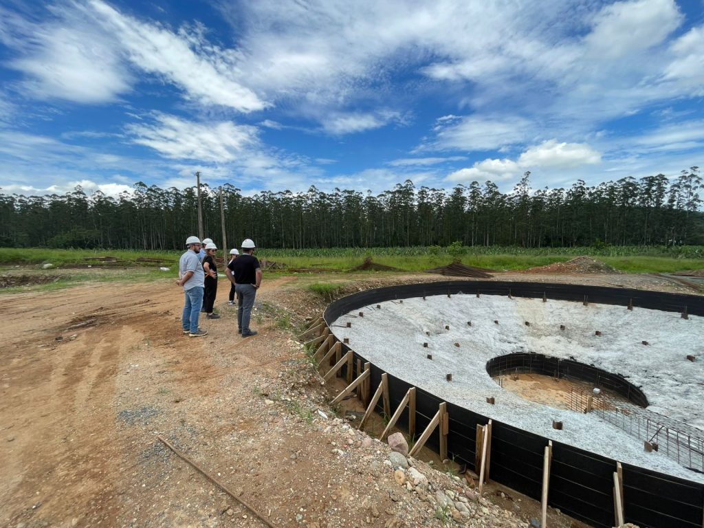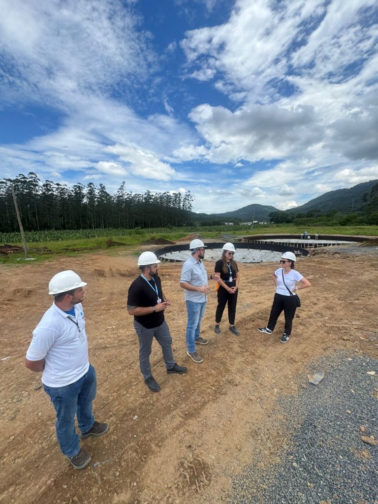 A Prefeitura de Jaraguá do Sul, por meio do Samae, segue com as obras de construção da nova Estação de Tratamento de Esgoto (ETE), no bairro Centenário. Na terça-feira (13), o diretor-presidente da autarquia, Onésimo Sell, e integrantes da equipe técnica receberam a analista de projetos da Gerência de Operações (GEOPE) – Infraestrutura e Parcerias Públicas do Banco Regional de Desenvolvimento do Extremo Sul (BRDE), Raquel Polenz Wielewicki, que realizou vistoria na obra, referente à fiscalização do contrato.