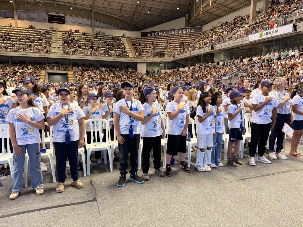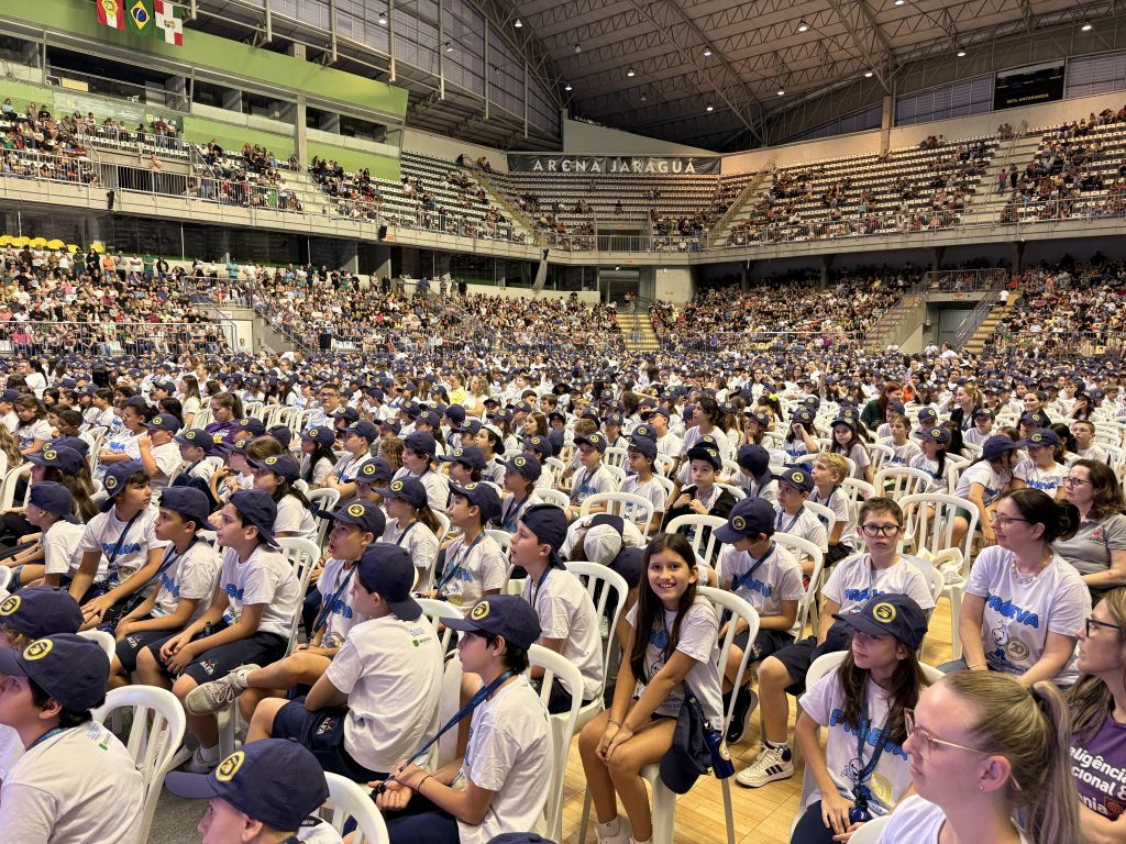 A Prefeitura de Jaraguá do Sul, o Samae e a Secretaria Municipal de Educação realizaram a formatura dos alunos que participaram do Programa de Educação e Valorização da Água (Proeva) este ano, na noite de ontem (27), na Arena Jaraguá. A cerimônia contou com a presença do prefeito José Jair Franzner, do diretor-presidente do Samae, Onésimo Sell, da secretária de Educação, Iraci Müller, além de demais autoridades, estudantes, professores, pais e familiares.