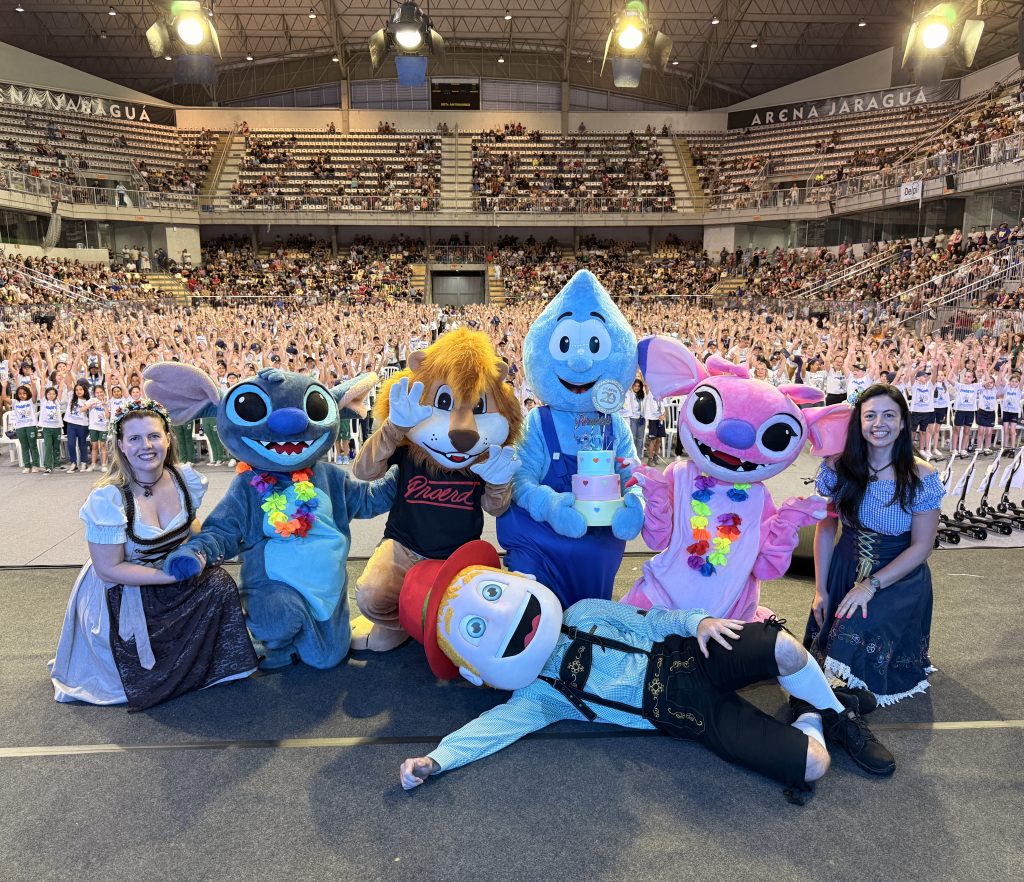 Durante a formatura, os alunos realizaram o juramento “Amigo da Água”, conduzido por Wesley Gabriel Briccius, que foi aluno da 1ª turma do Proeva e que hoje é servidor do Samae. Na sequência ocorreu a entrega dos certificados. A seguir a celebração dos 20 anos do programa, que contou com a participação do Guto (mascote do Proeva), do Daren (mascote do Proerd), do Wilfred (mascote da Schützenfest) e de personagens, que animaram os estudantes. Para marcar este momento especial, a cerimônia também contou com a presença do Gustavo Bardim, que cantou, junto com os alunos, a música “Olha a Água”.