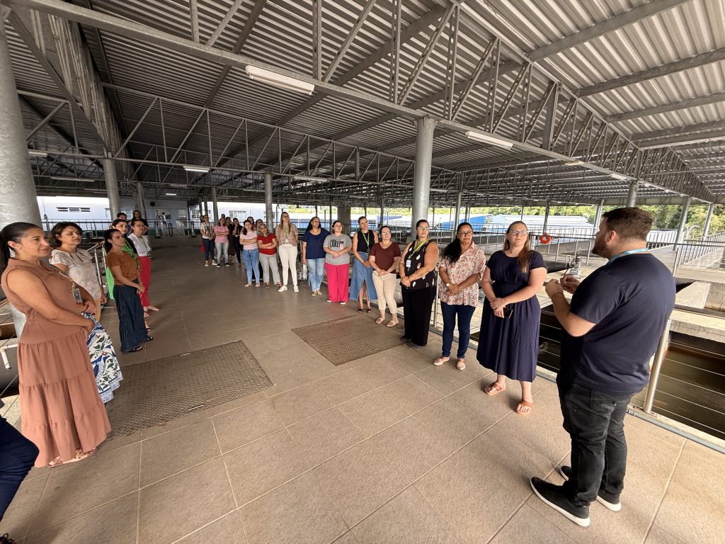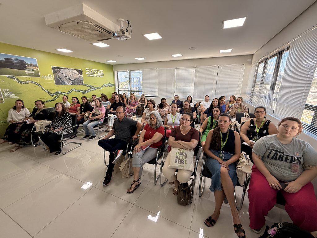 A capacitação teve início com uma visita ao Espaço de Memória do Samae e à Estação de Tratamento de Água (ETA) Central. Na sequência, foi realizada uma apresentação institucional e, em seguida, os professores participaram de uma revisão dos conteúdos trabalhados com os estudantes ao longo dos seis encontros realizados nas escolas.