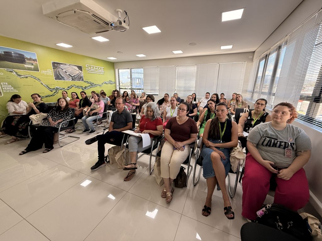 A Prefeitura de Jaraguá do Sul, por meio do Samae e da Secretaria Municipal de Educação, promoveu, nesta terça-feira (27), uma capacitação para os professores da Rede Municipal de Ensino que atuam como regentes do Programa de Educação e Valorização da Água (Proeva).