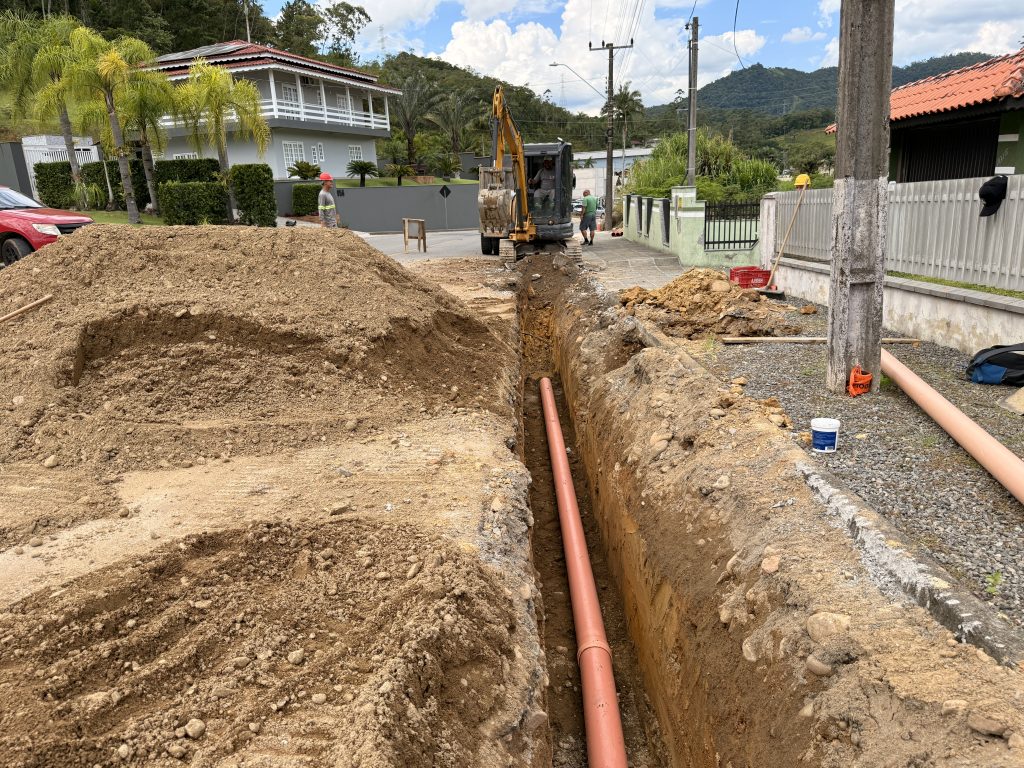 A Prefeitura de Jaraguá do Sul, por meio do Samae, está executando uma obra de implantação de rede coletora de esgoto na Rua José Martins, no trecho entre a Rua Roberto Ziemann e o nº 2.166, no bairro Três Rios do Norte. Estão sendo implantados 2.200 metros de rede, com tubulação de 150 milímetros de diâmetro.