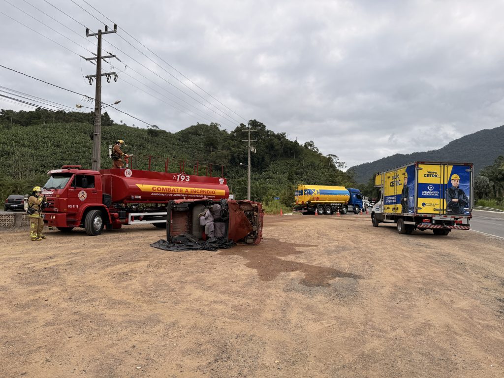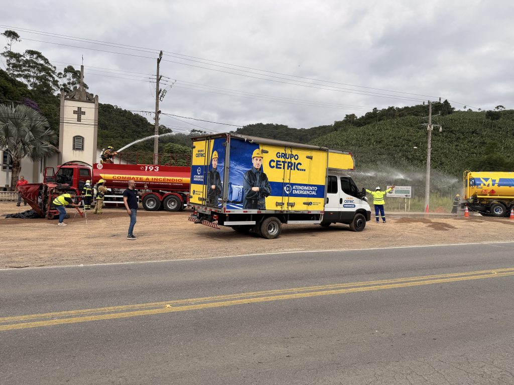Segundo o diretor Técnico do Samae, Tuhã Schmitt do Evangelho, a ocorrência fictícia previu a colisão entre dois veículos de passeio e um caminhão-tanque que transportava cerca de 15 mil litros de óleo diesel, com ruptura parcial do reservatório, vazamento significativo e incêndio. “O cenário simulou o escoamento do combustível pela drenagem da rodovia, atingindo o Ribeirão Poço D’Anta e seguindo até o Rio Itapocu, com potencial impacto na captação e no abastecimento de água em Jaraguá do Sul”, explicou.