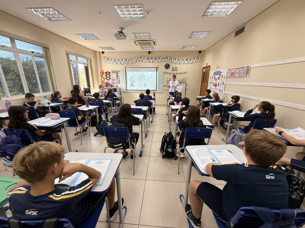 A Prefeitura de Jaraguá do Sul, por meio do Samae, realizou na segunda-feira (30) a aula inaugural do Programa de Educação e Valorização da Água (Proeva) 2026, para os estudantes do 4º ano da Escola Sesc Jaraguá do Sul. O programa é desenvolvido ao longo do ano com a participação de estudantes das redes municipal, estadual e particular de ensino.