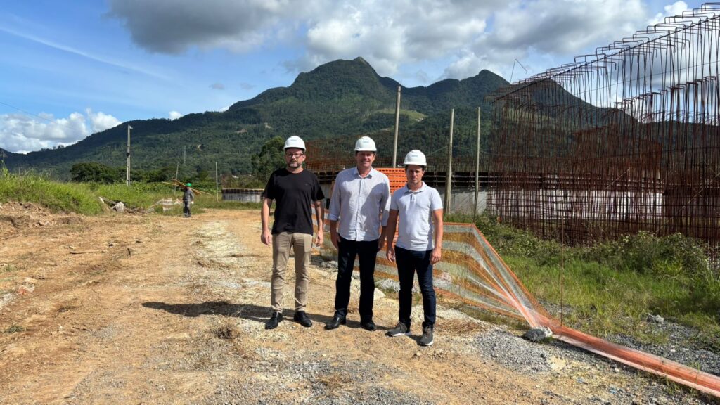 O diretor-presidente do Samae de Jaraguá do Sul, Onésimo Sell, e integrantes da equipe técnica da autarquia receberam o presidente da Câmara de Vereadores de Massaranduba, Maicon Kuhnen, e o diretor administrativo da Casa, Dionísio Kruger, para uma visita técnica à obra da nova Estação de Tratamento de Esgoto (ETE), no bairro Centenário. A unidade, que está em fase de obras, integra um dos principais projetos estruturantes do Samae.